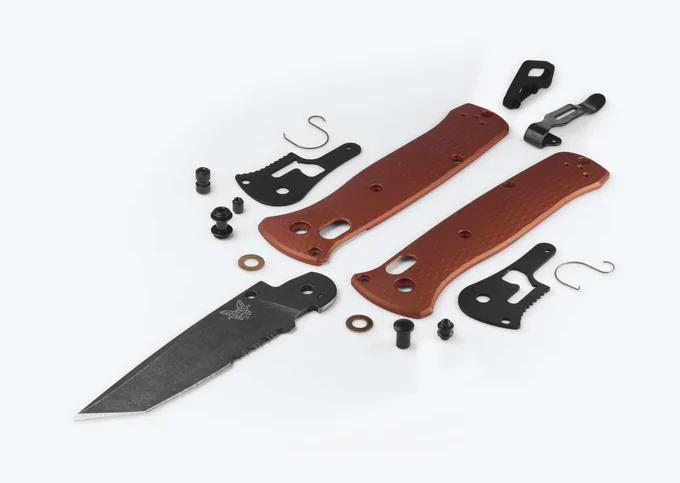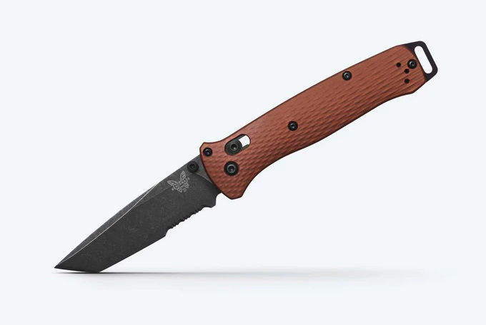 Benchmade 537SBK-07 Bailout, 3.38″ Partially Serrated DLC Battlewash MagnaCut Tanto Blade, Burnt Copper Aluminum Handles W/ Clip