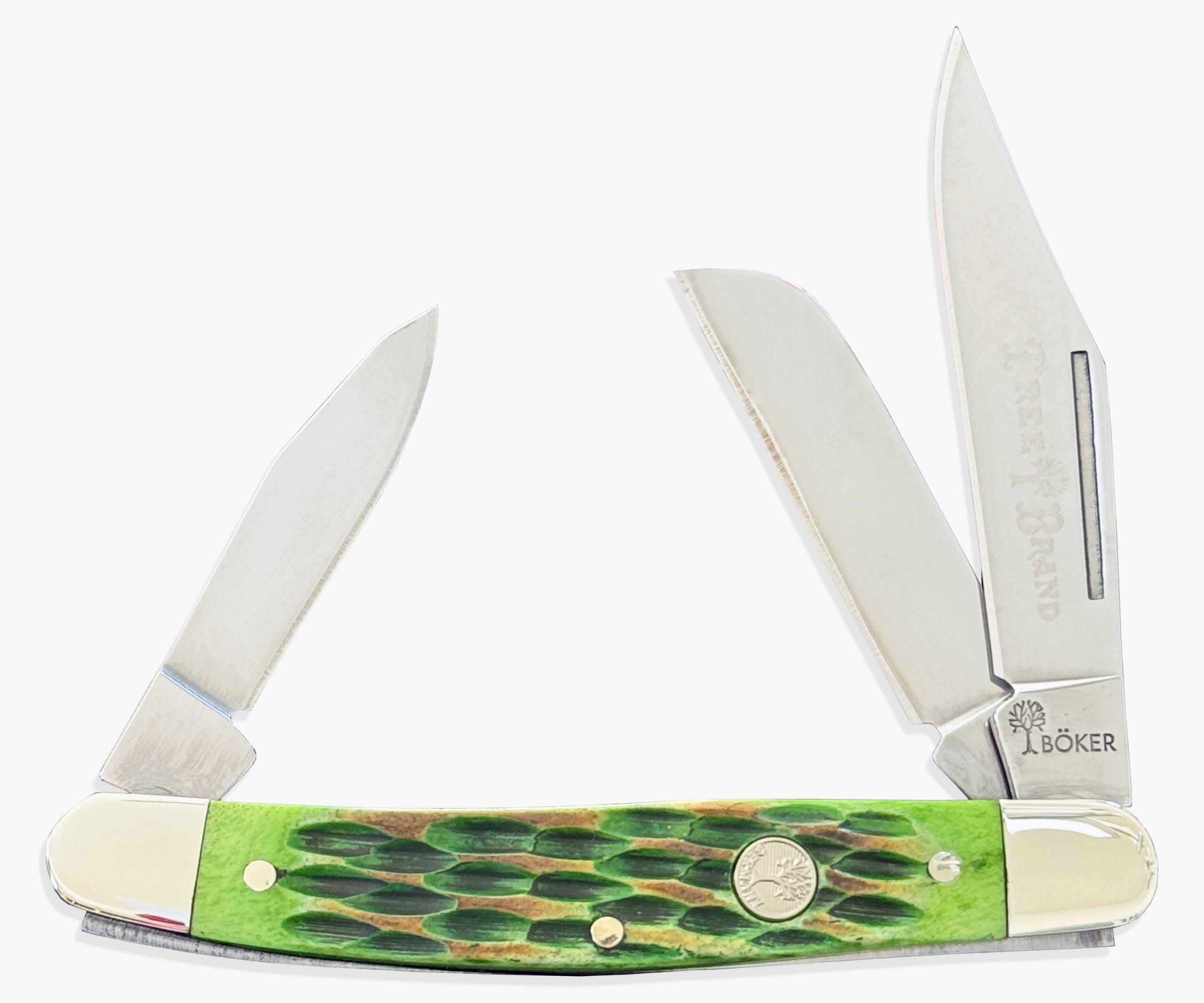 Boker Manufaktur Traditional Series 2.0 Medium Stockman Pocket Knife, Burnt Lime Green Jigged Bone Scales, 3.5″ D2 Blades (C&C Exclusive)