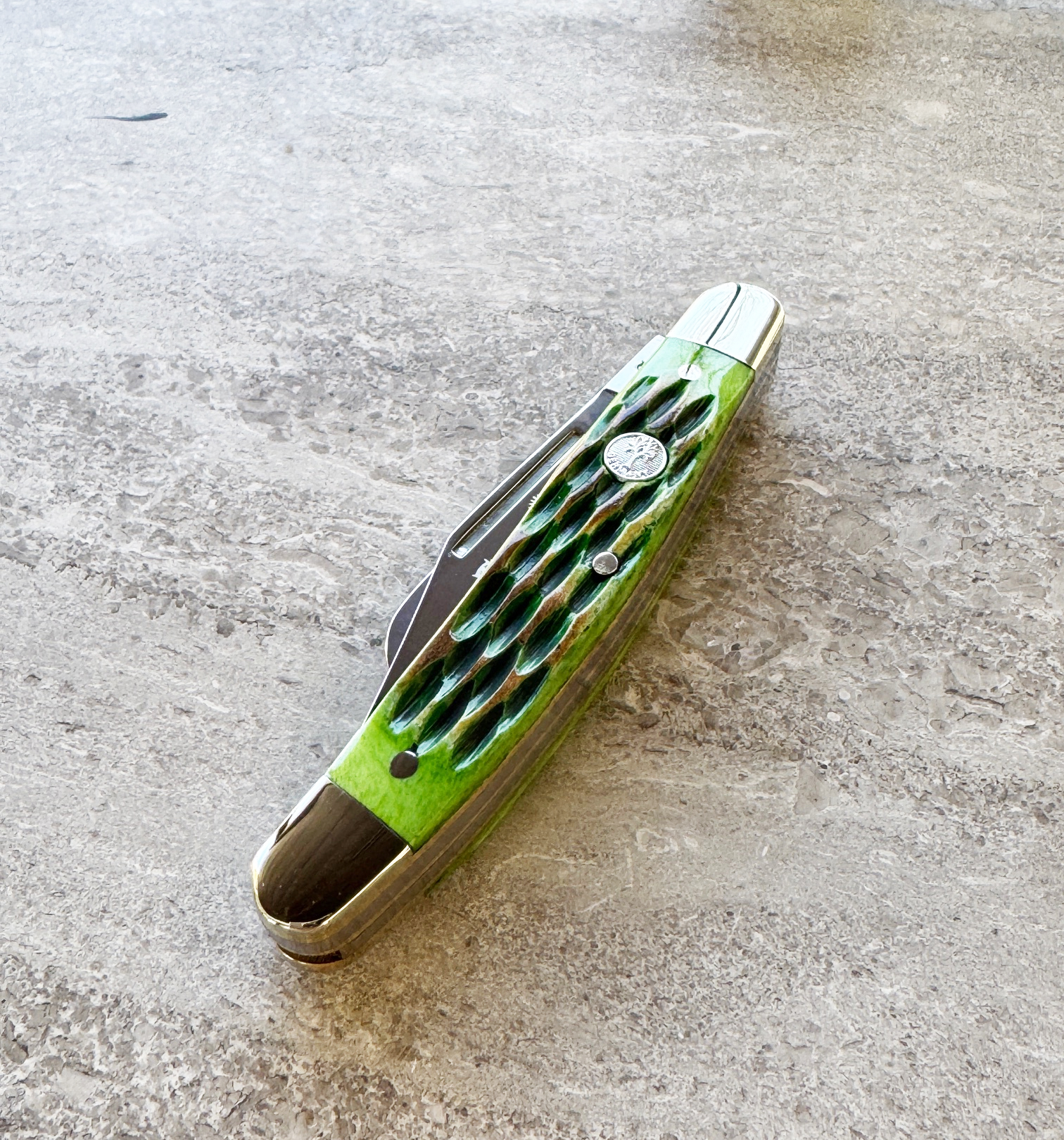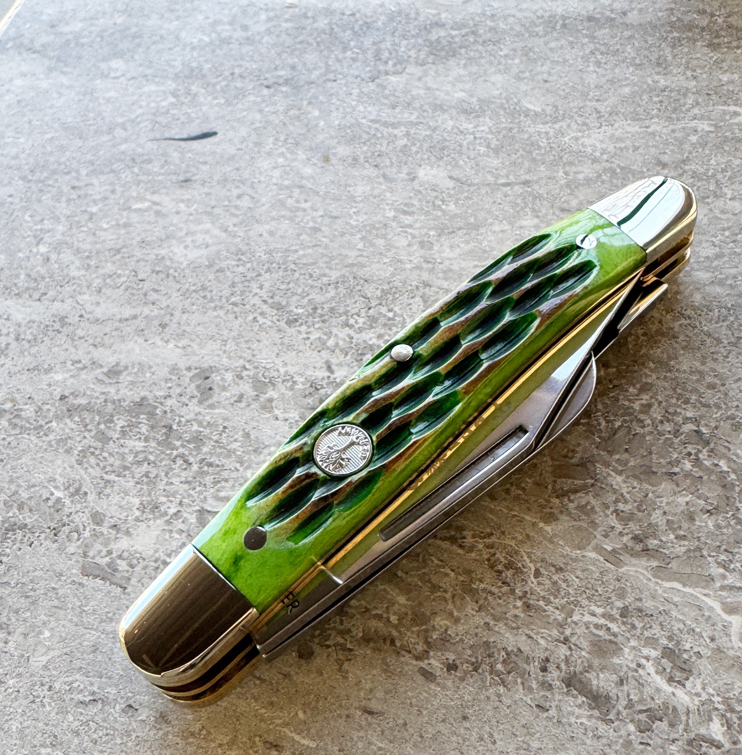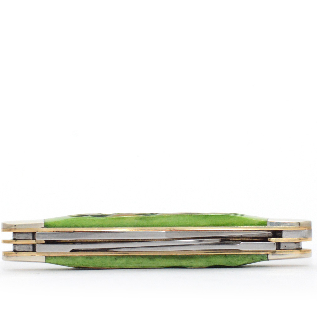 - Handle Material: Burnt Lime Green Jigged Bone Scales, Nickel Silver Bolsters