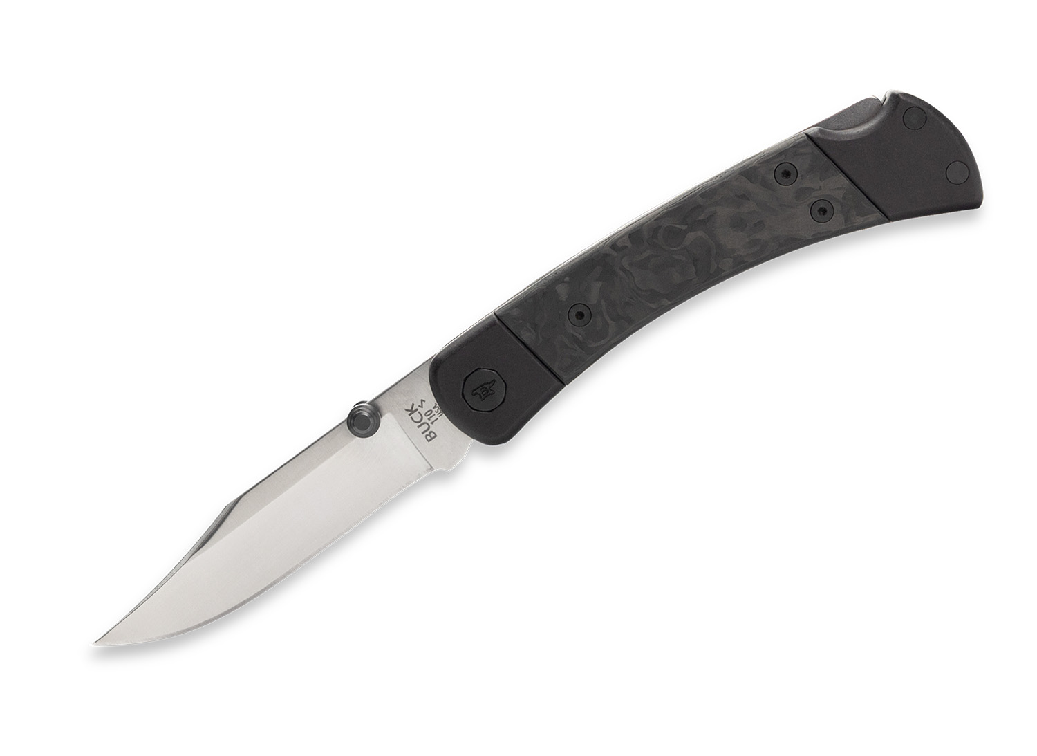Buck Knives 110 Folding Hunter Sport Knife, Aluminum Frame, Marbled Carbon Fiber Scales, BOS S35VN Blade W/ Pocket Clip (Chairman’s Tour Limited Edition – Signed by CJ Buck)