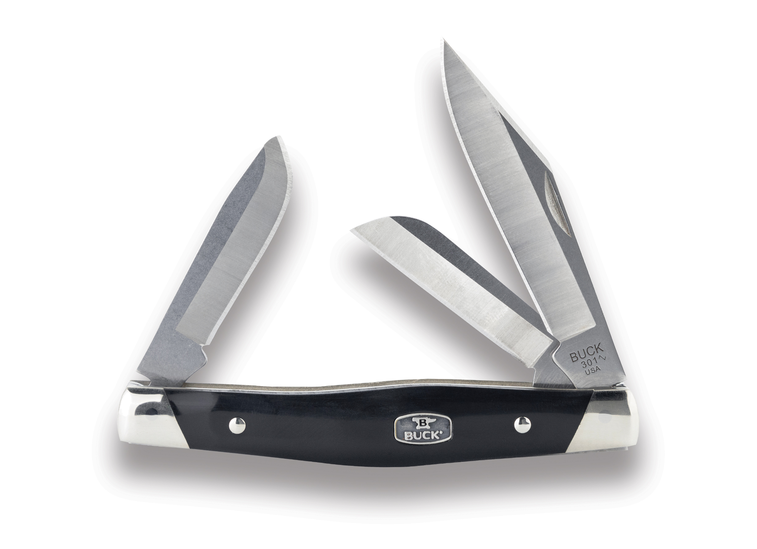Buck Knives 301BKS1 Stockman Folding Pocket Knife, 2.875″ 420HC Blade(s), Black Polymer Handle W/ Nickle Silver Bolsters