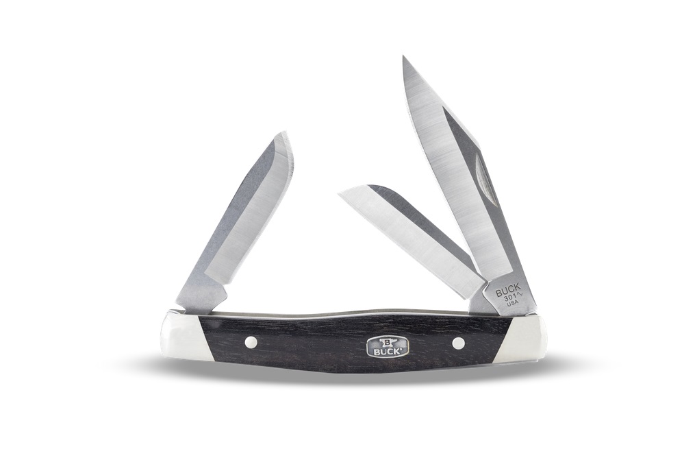 Buck Knives 301BRS2 Stockman Folding Pocket Knife, 2.875″ 420HC Blade(s), Genuine Ebony Wood Handle W/ Nickle Silver Bolsters