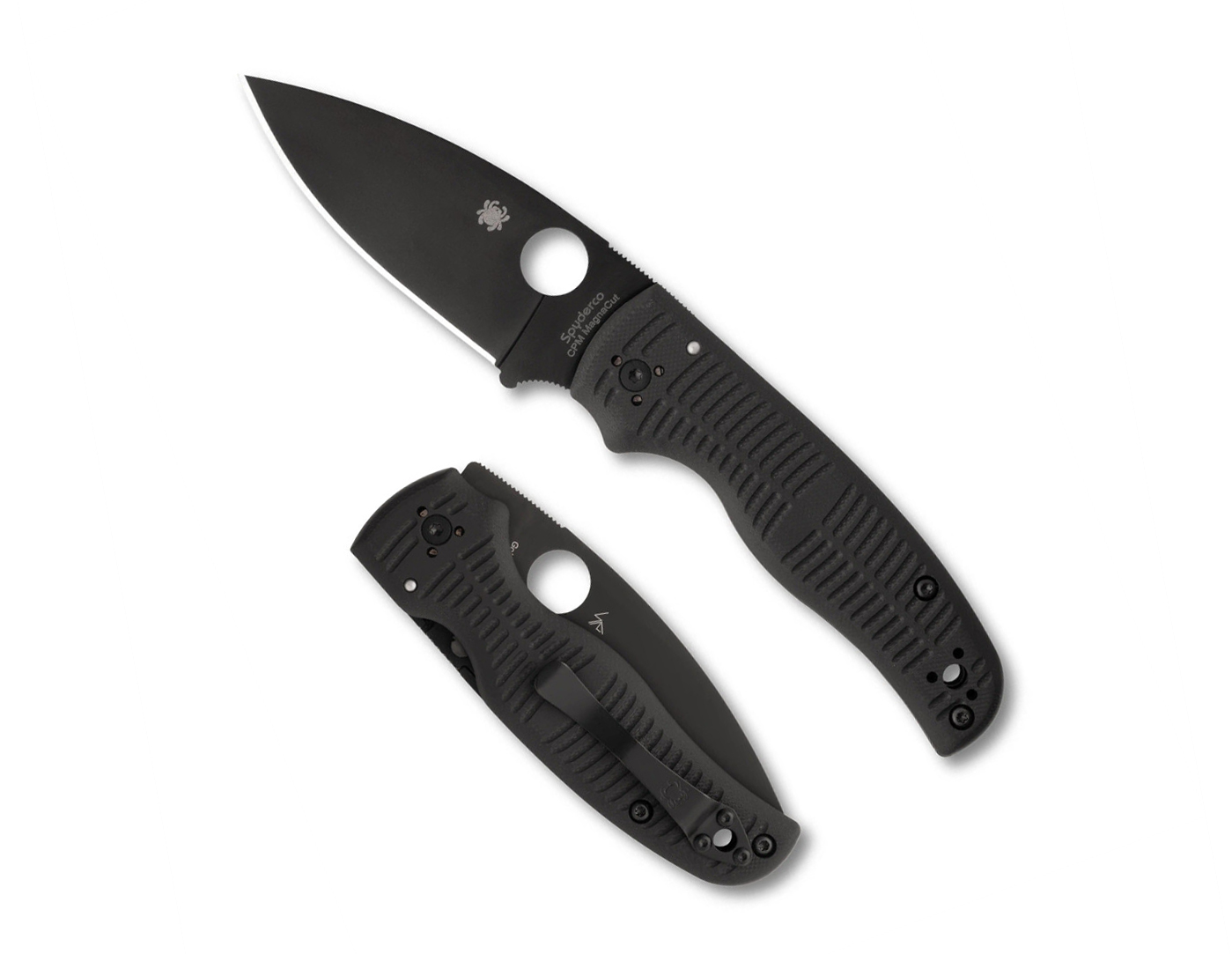 Spyderco Shaman Salt Folding Knife, Compression Lock, 3.58″ CPM-MagnaCut Black DLC Plain Blade, Black G10 Handles W/ Clip